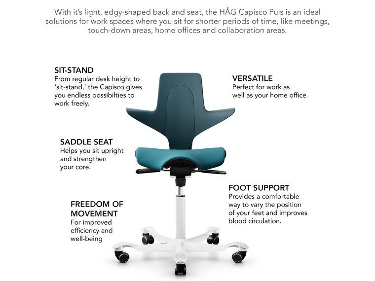 Capisco Puls, Aktif Oturma Ofis Sandalyesi, dinamik tasarımıyla hem konfor hem de hareket özgürlüğü sunar. Özel oturma pozisyonlarıyla bel ve sırt sağlığını destekleyerek, uzun saatler boyunca rahat bir oturum deneyimi sağlar. Capisco'dan farkı sırt kısmı tamamen plastik olmasıdır.